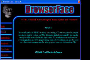 BrowserFace is an HTML enabled, autorunning, CD menu sysetm for people needing to deliver content on CDs.